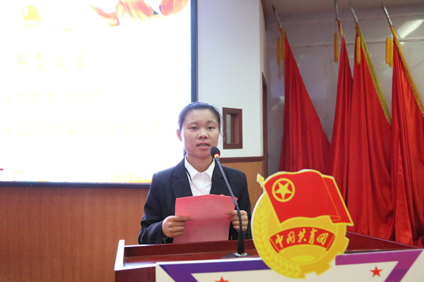 | 图为荣获伟德国际1946官网“活力团支部”代表、伟德国际19462016级英语5班团支部书记伍俏丽同学发言 孙立青摄 |