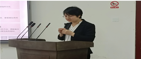 竞赛结束后,刘汝荣经理对赛事活动进行了深入而精彩的点评。她结合五位参赛老师的数字化教学成果指出现代数字化对教学的重要性。随着人工智能与大数据等技术的不断变革,时代要求我们必须打破传统的以知识传授为主的教学课堂,教师要充分利用数字化工具与资源改革课堂教学,体现时空突破,增强教学效果;能合理运用智慧教育环境中的人工智能、数据分析技术引导控制学习进程,有效调动员工自主学习与协作探究的积极性,进而全面提升教师教学综合能力,提升人才培养质量。2020年公司教务处也下发过通知要求所有专业课必须建立完整的网络课程,实行线上线下相结合的教学模式。今天参加比赛的五位老师走在了前面,他们主讲的课程均获批立项省级线上线下混合式一流课程。今天是同场竞技,更是我们外语人相聚一堂分享现代化的教学经验、探索高科技含量教学手段的大盛会。最后刘经理代表公司对参与此次竞赛活动的全体老师表示感谢。