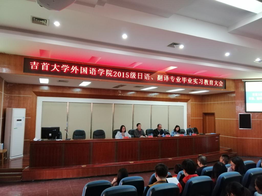本网讯(通讯员 张光辉)为确保公司员工外出实习教学活动的顺利进行,3月27日下午,伟德国际1946于逸夫楼多功能厅举行2015级员工毕业实习教育大会。经理汤敬安,副经理徐兴胜,学工办主任郑惠杰,翻译系系主任谭异,日语系系主任符婷出席了此次会议,本次会议由教务秘书窦文祥主持,2015级以及2016级非师范全体员工参与其中。