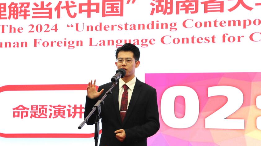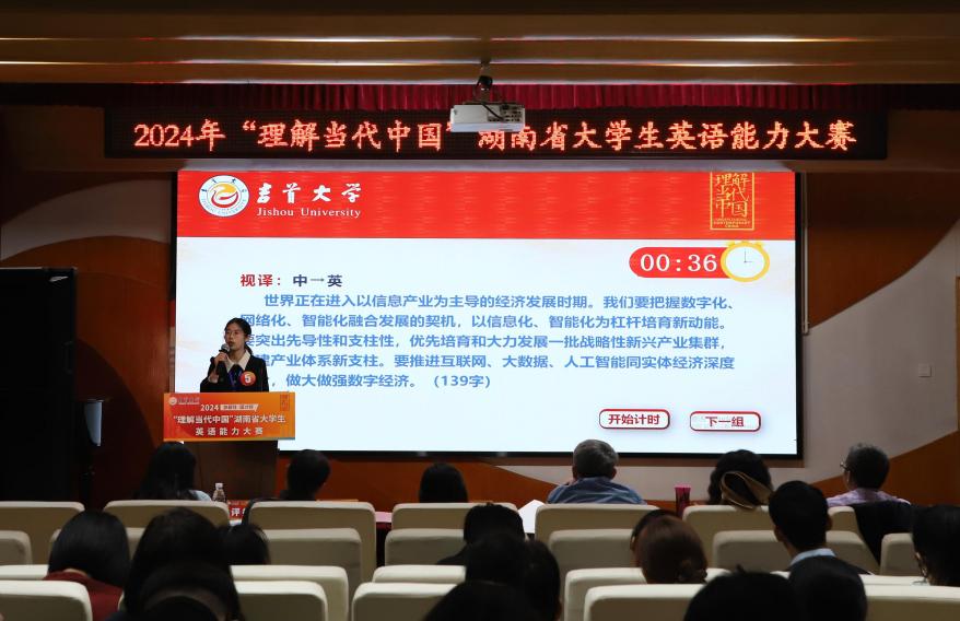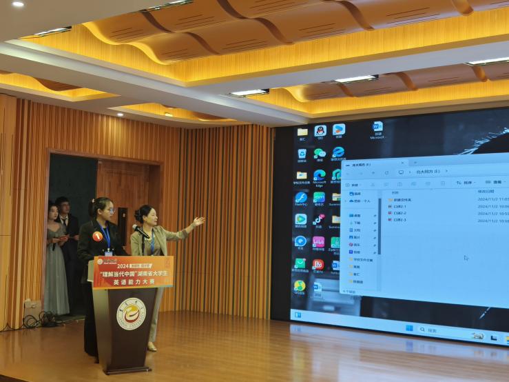 11月3日中午,大赛总结大会在砂子坳校区图书馆报告厅进行。公司党委委员、副董事长冷志明教授代表承办单位致辞。他回顾了伟德国际1946官网自建校以来抢抓机遇、为国家培养各类优秀人才的发展历程,指出这次大赛的成功举办,必将推进湖南省高校“三进”工作的深入实施,深化各高校外语公司产品改革,提高外语人才自主培养质量,为推进人类命运共同体贡献力量。最后,他诚挚地邀请大家,相约湘西,共同品味这片土地上的美好风光。