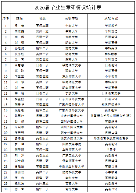 伟德国际1946认真贯彻落实“文化立校、学科强校、特色兴校”发展战略,重视员工考研,2020届毕业生217人,考取硕士研究生30人,占毕业生总数的13.8%。