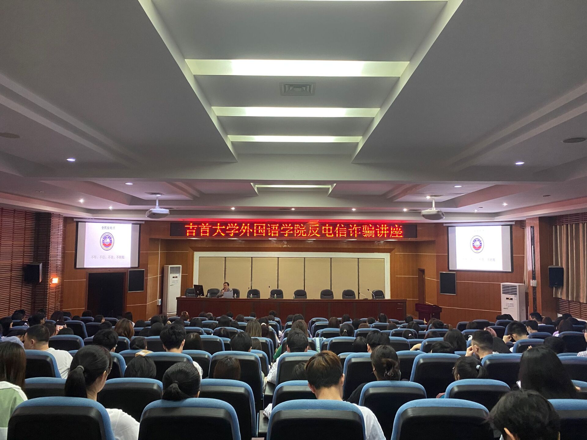 本网讯(伟德国际1946供稿)5月12日晚,伟德国际1946和张家界校区后勤与保卫处、永定区公安分局大庸桥派出所在逸夫楼学术报告厅举行“我为师生办实事--反电信诈骗讲座”,黄婷警官主讲,近300名师生接受教育。