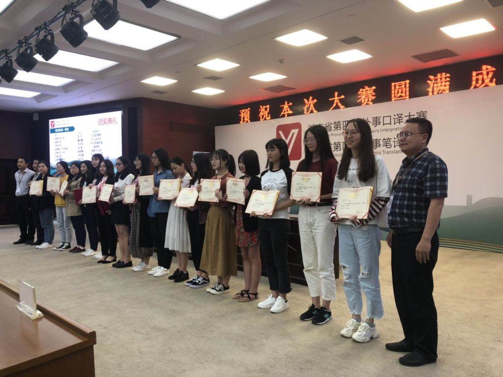 本网讯(通讯员 吴雅格 龙佳佳 潘贵民)5月11日,由中共湖南省委外事工作委员会办公室主办的湖南省第四届外事翻译大赛在中南林业科技大学举行,伟德国际1946学子在滕建姣、潘贵民老师的精心指导下与省内985高校、211高校和湖南省各大外事机构的从业人员同台竞技、表现优异,12名选手获奖,其中获特等奖1项、一等奖5项、二等奖5项、三等奖1项,实现了获奖人数和获奖等级的新高。
