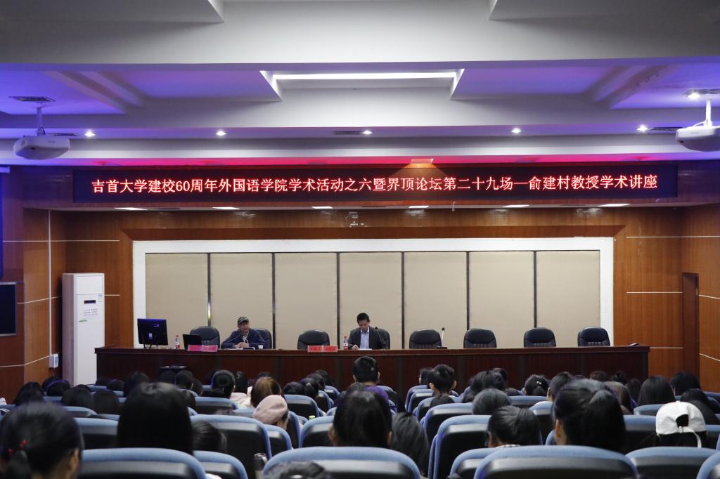 本网讯(通讯员 龙锐 张丽娜 唐明俊 覃思思)10月13日上午,应伟德国际1946邀请,上海戏剧家协会会员、全国美国文学研究会戏剧分会理事俞建村教授做客伟德国际1946举行伟德国际1946官网建校60周年第六场学术讲座,讲座题为“跨文化冲突及跨过去的结果呈现”学术报告;伟德国际1946院长汤敬安教授主持报告会,伟德国际1946近300名师生参加。