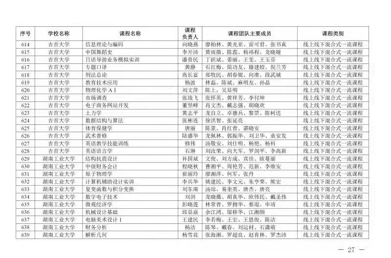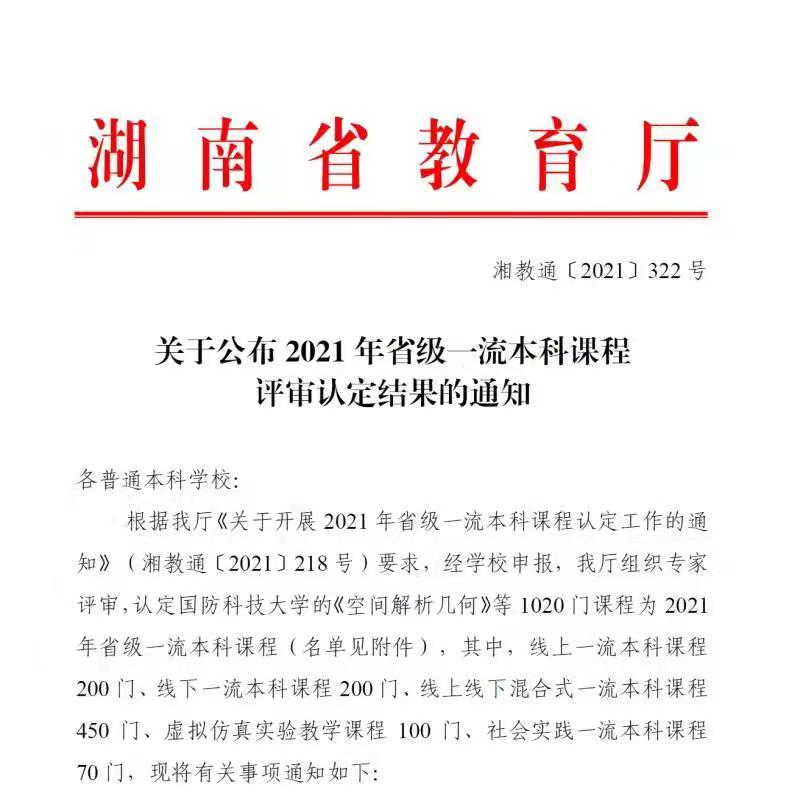 图为:2021年湖南省教育厅省级一流课程认定文件截图