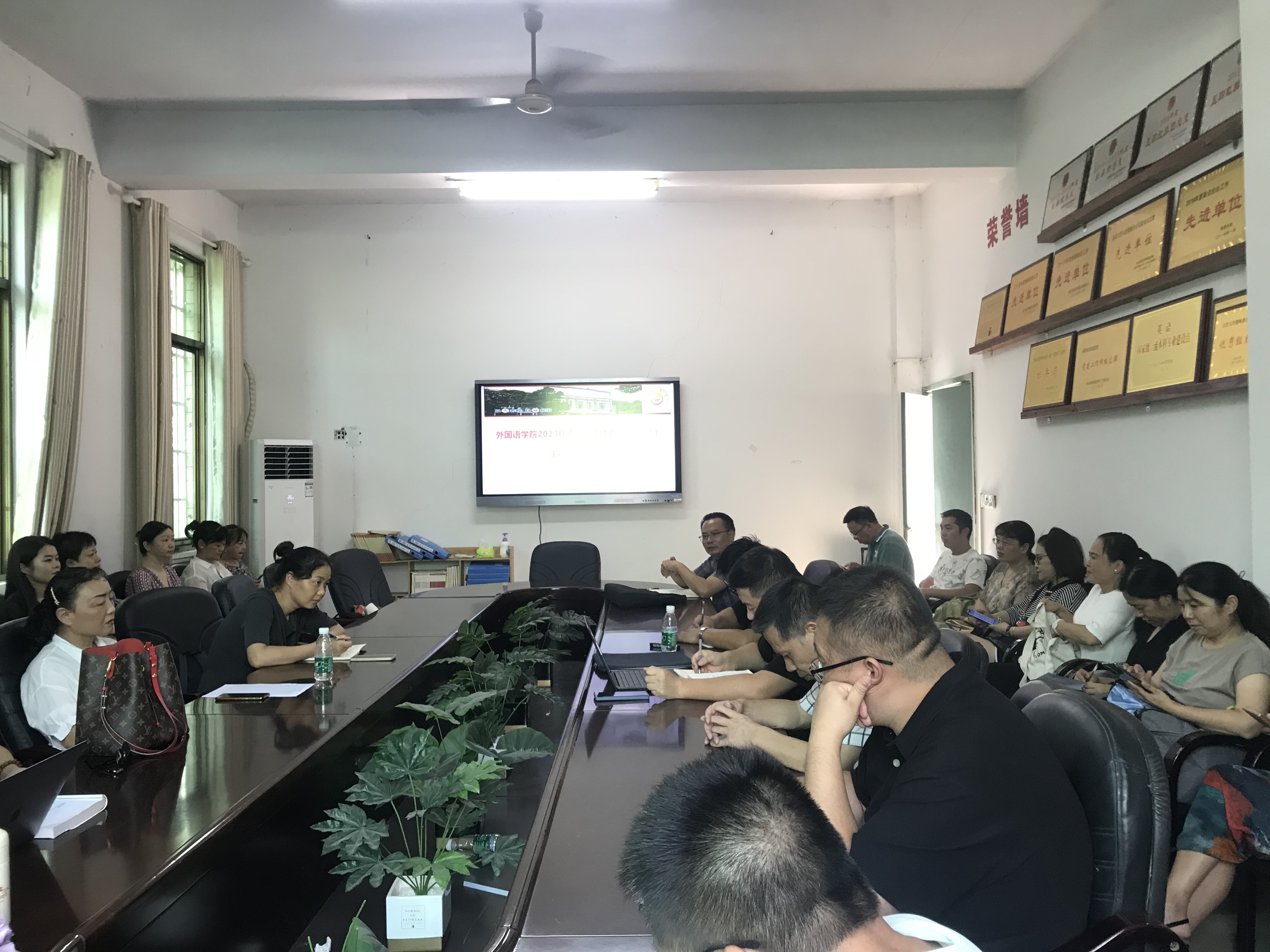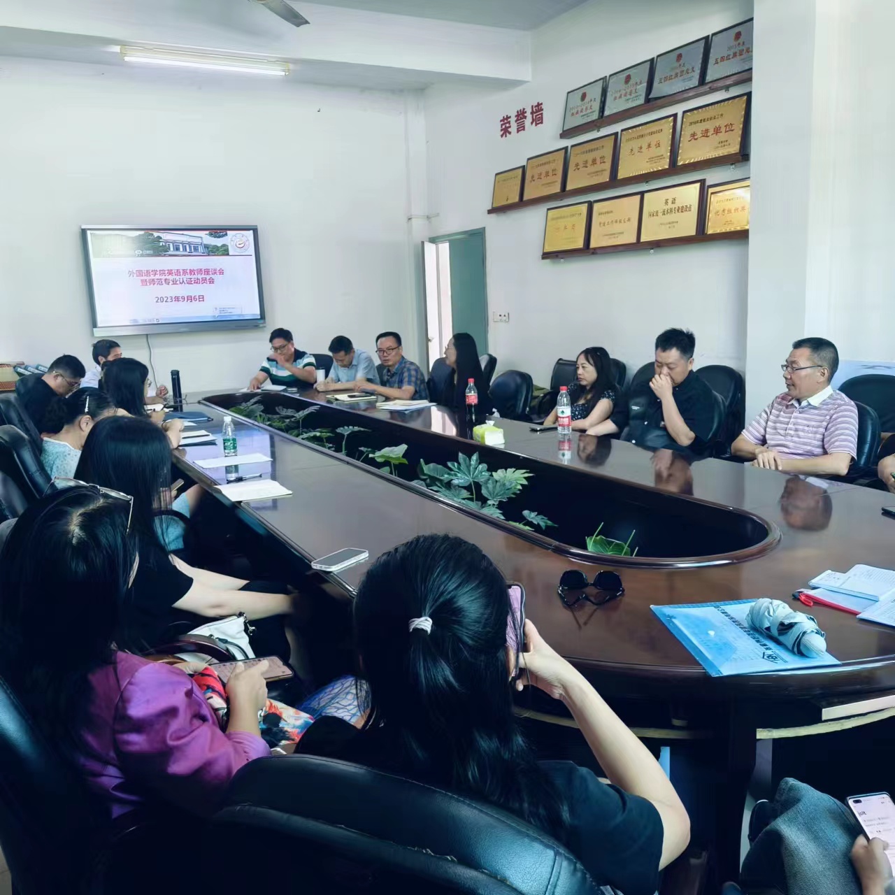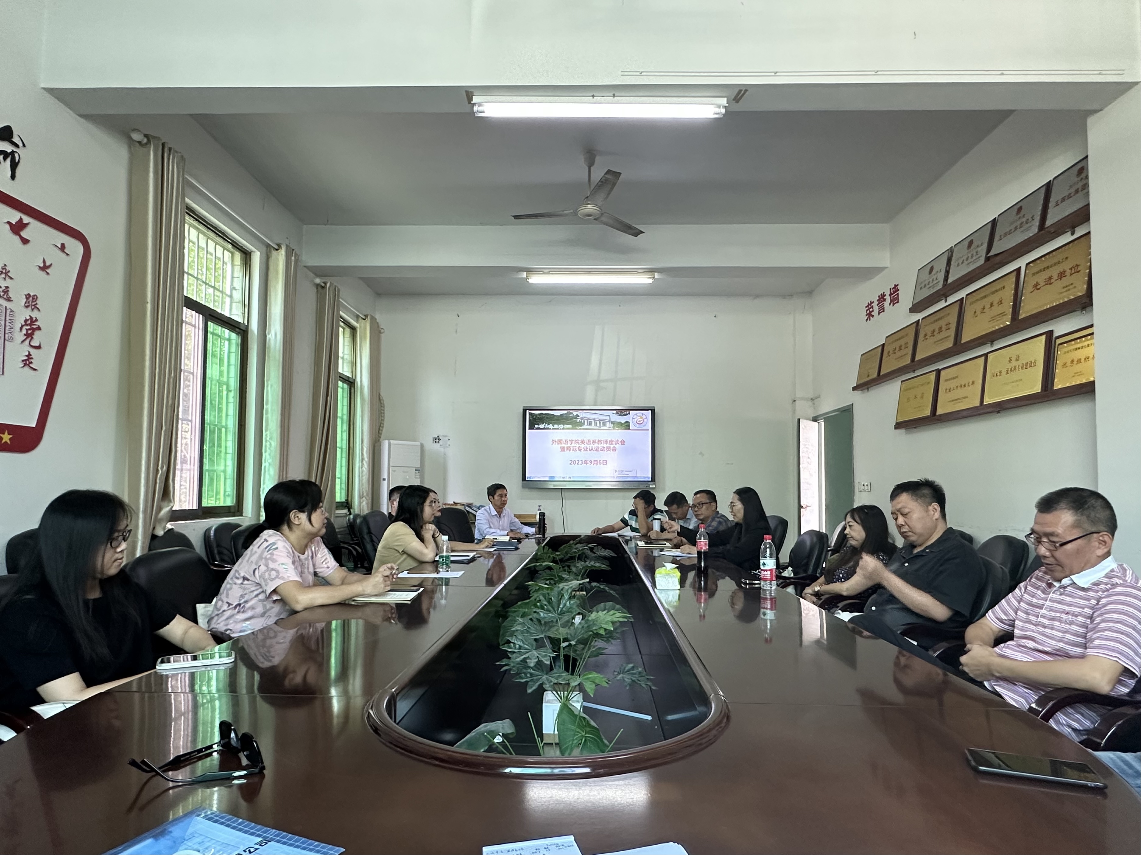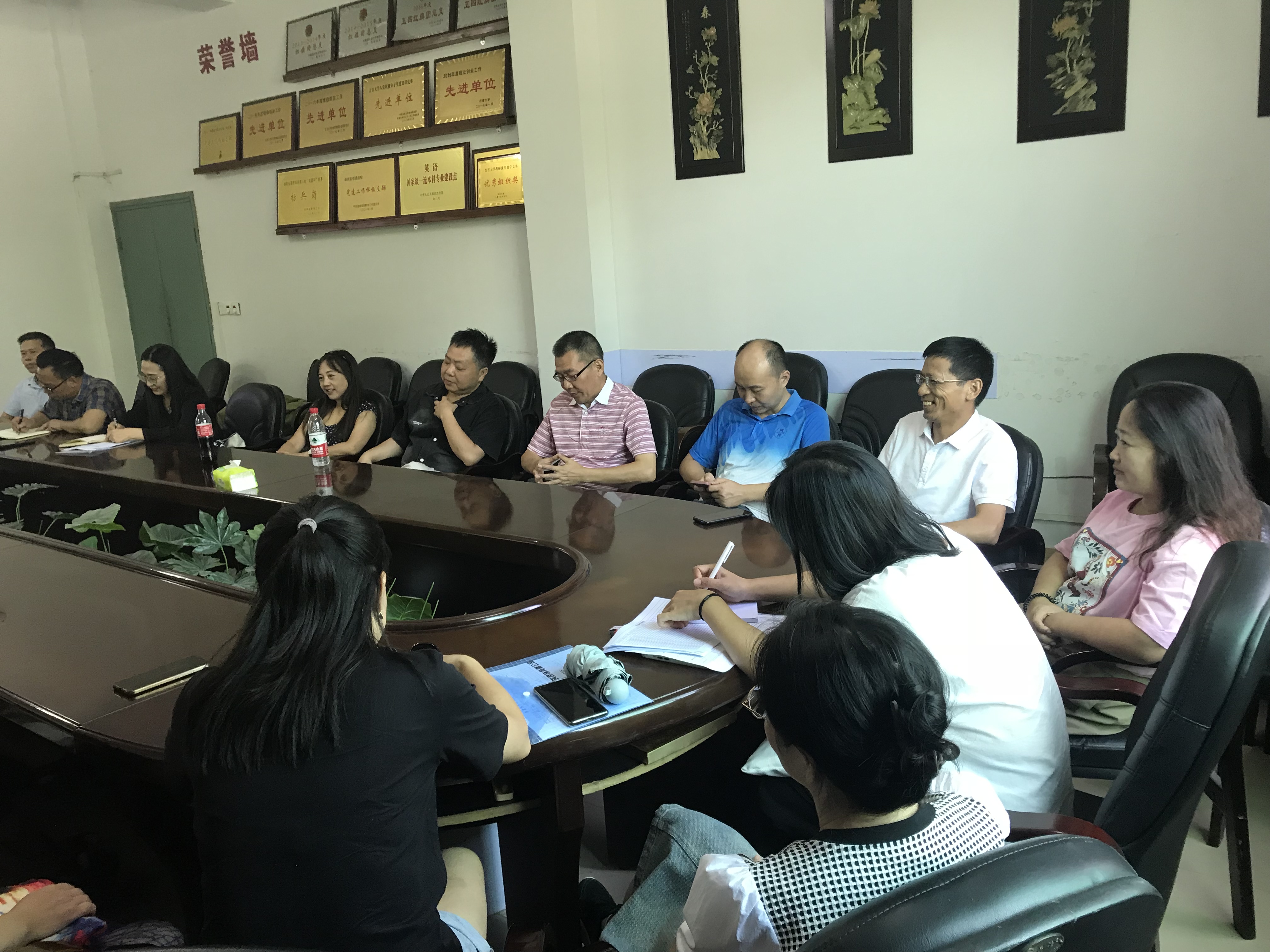 9月6日下午3点在公司张家界校区逸夫楼3214会议室,公司经理刘汝荣、党委书记简功友、副经理唐小田组织英语系全体教师座谈,就国家一流本科专业建设点英语专业年度建设计划落实、重点工作完成情况,下一阶段建设面临的困难和问题,解决对策等展开交流。会议以年度人才招聘情况为切入点,分析了人才招聘反映公众对外语类专业认识的误区,传导了招生所带来的专业建设和就业压力。会议结合国家一流本科专业建设要求,讨论了专业招生、就业、师范类专业认证、课程建设、教学管理队伍建设的提质增效,对标对表找短板、查问题、明思路、谈举措。