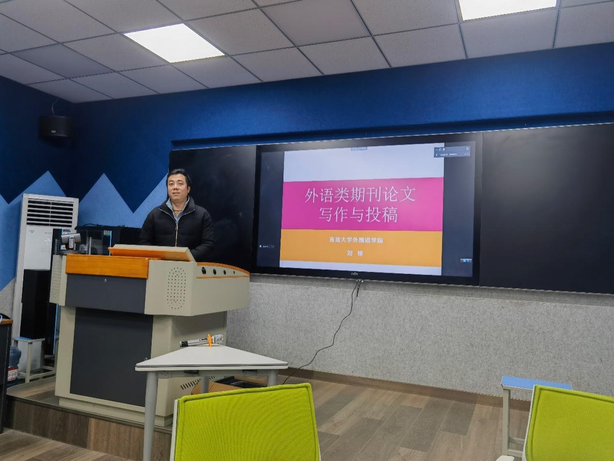 刘锋博士讲座主题为“外语类期刊论文写作与投稿”。刘博士强调文章结构的完整性和逻辑性,内容上一定要有正确的政治取向和舆论导向。他随后通过具体案例分析让老师们对期刊论文写作要求有更为清晰的认识。最后,刘博士从投稿量及用稿量、普通作者及知名专家、学术性及下载、引用量和投稿时间及发表时间四方面简单介绍了学术论文投稿的情况,并勉励老师们一定要静下心做学问,切实提升自身科研水平和写作能力。
