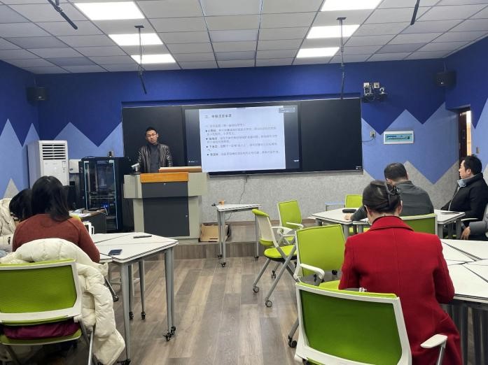 潘贵民博士讲座主题为“创新与超越——高校外语专业教学与科研若干问题刍议”。潘博士从选题、文本打磨及团队建设、教学理念等角度对国家社科基金及教改课题、一流课程等的申报及外语专业教学科研若干问题进行探讨、分析与阐述。潘博士认为教师应当积极申报教改课题和撰写教学论文,通过参与各类教学竞赛的方式来提升教学能力。最后,潘博士特别提到“教学是良心活”,一名合格的高校教师应兼顾好科研和教学两方面,全面发展和提升自身能力。