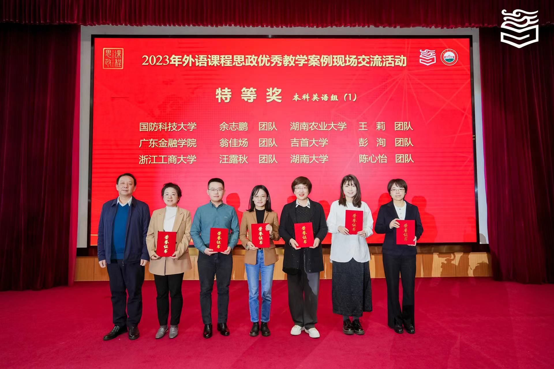 (通讯员 田建平)11月10-12日,2023年外语课程思政优秀教学案例全国交流活动在湖南农业大学举行,公司教师彭洵、苏根英、田建平、罗蔓、马小燕团队荣获大学英语组特等奖,这是公司在此项赛事中的新突破。