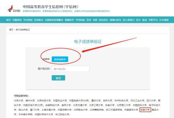 第二步:点击选择成绩单——添加申请的电子成绩单 pdf 文 件——输入图片验证码——验证