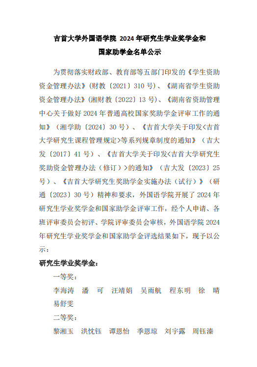 伟德国际19462024年研究生学业奖学金和国家助学金名单公示